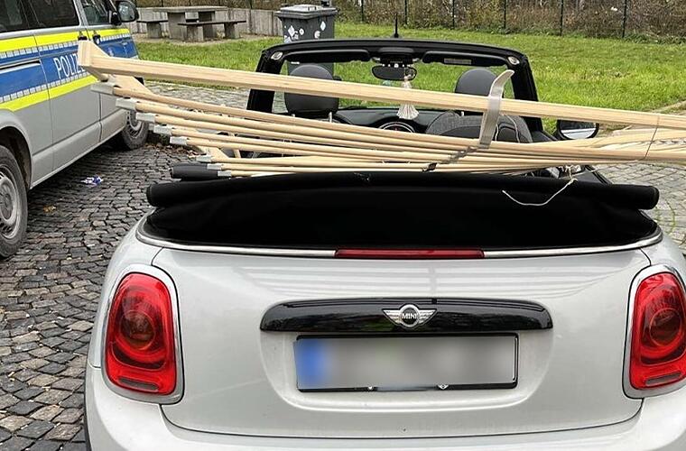 Lattenrost mit Geschenkband gesichert - Polizei stoppt Cabrio