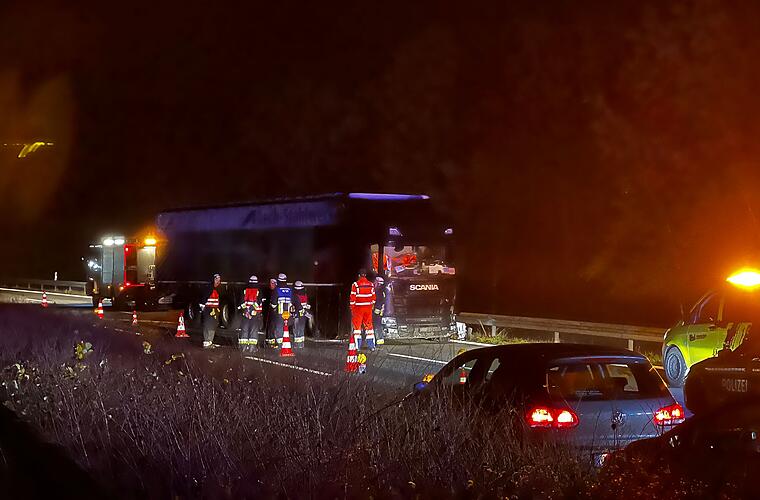 Dadurch geriet der Sattelzug auf die Gegenfahrbahn. Diese querte er ebenfalls und kam letztlich entgegen der Fahrtrichtung quer zwischen dem rechten und mittleren Fahrstreifen der Richtungsfahrbahn Würzburg zum Stillstand.