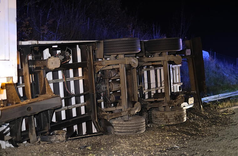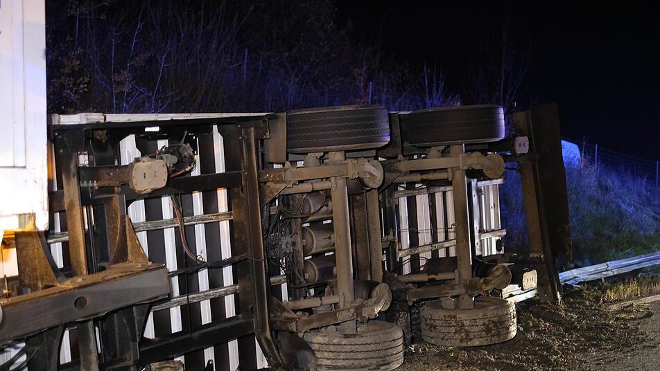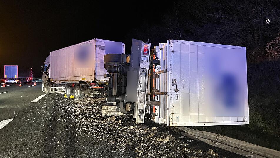 Der Anhänger eines Lastwagens ist umgekippt und gegen die Leitplanke der A9 im Kreis Nürnberger Land geknallt. Der Fahrer hatte wohl einen Kreislaufzusammenbruch und verlor die Kontrolle über das Fahrzeug.