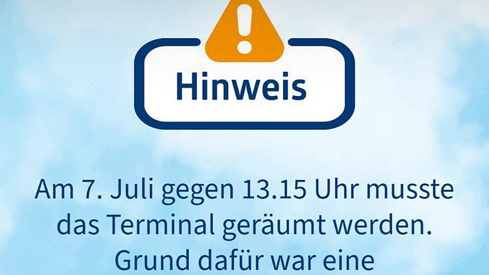 "Wir bitte um Ihr Verständnis und um Entschuldigung", schreibt der Airport Nürnberg am Sonntag (7. Juli 2024) in seiner Instagram-Story. Ein Terminal musste komplett geräumt werden, nachdem sich dort bereits kontrollierte und noch nicht kontrollierte Passagiere zeitgleich aufgehalten hatten.