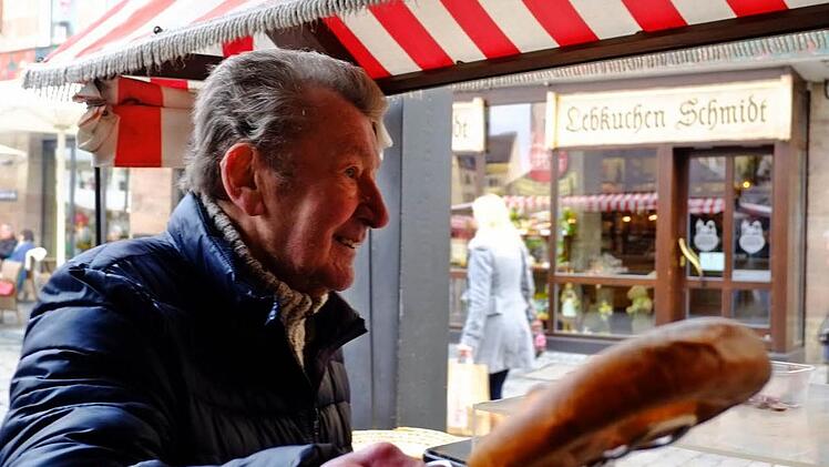 Mit seinem Brezelstand gehört Günter Seifert zum Hauptmarkt wie das Alte Rathaus und der Schöne Brunnen. "Ich stehe seit über 30 Jahren mit meinem Wagen hier", sagt Seifert und zeigt auf den Holzkarren mit dem rot-weißen Dach.