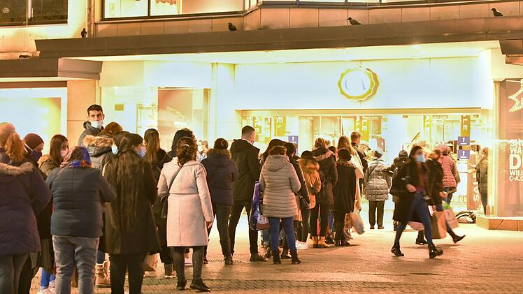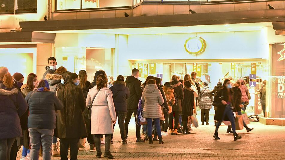 Vor dem Corona-Lockdown drängten am Dienstag noch einmal Massen in die Innenstädte. In Nürnberg musste ein Geschäft zeitweilig schließen, weil zu viele Menschen in den Laden strömten. Die Polizei warnte anstehende Kunden mit Lautsprecher-Durchsagen.