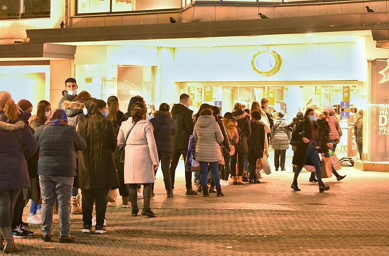 Harter Lockdown sorgt für Chaos in Nürnberger Innenstadt: Einen Tag vor dem bundesweit in Kraft getretenen harten Lockdown haben sich in vielen deutschen Innenstädten am Dienstag (15. Dezember 2020) teils lange Schlangen gebildet. Um noch ausstehende Weihnachtseinkäufe zu erledigen, machten sich etliche Menschen auf in die Läden und Shopping-Center. Dies führte mancherorts zu chaotischen Zuständen.