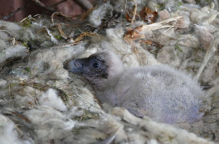 Das Bartgeierpaar des Tiergartens Nürnberg zieht ein Adoptiv-Küken aus österreichischer Kunstbrut auf. Die Eingliederung von "Wastl" klappt gut, heißt es.