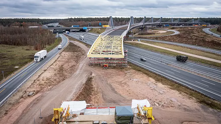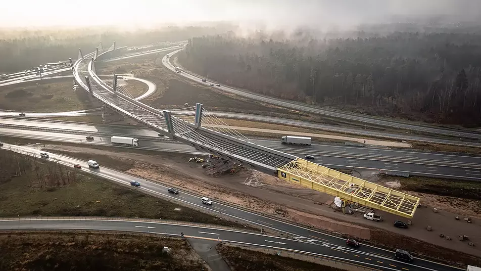 Am Autobahnkreuz Nürnberg-Ost finden seit geraumer Zeit umfangreiche Bauarbeiten statt. Ein bedeutender Teil ist die vor Ort befindliche 10.000 Tonnen schwere Stahlverbundbrücke, die die A6 und A9 entlasten soll. Das auch "Overfly" genannte Bauwerk wurde Ende vergangenen Jahres um stolze 64 Meter verschoben, um die Autobahnen zu entlasten. Die eingeleiteten Maßnahmen sind aufgrund der hohen Verkehrsauslastung notwendig - täglich passieren etwa 136.000 Fahrzeuge den fränkischen Knotenpunkt.