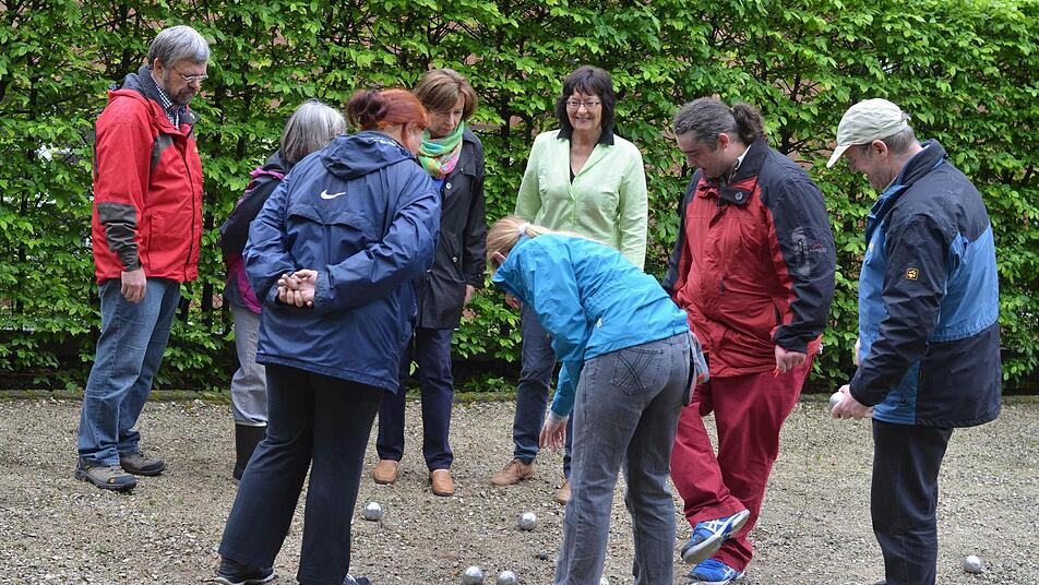 Spiel, Sport und Vergnügen Genau auf den Kopf hat Erika Grimm das Schweinchen nicht getroffen. Aber ziemlich nahe liegt der große schon beim kleinen Metallball. Rousselot wirft trotzdem einen kritischen Blick auf das Stillleben im Kiesbett. Dann hebt er drei Finger wie zum Schwur in die Luft. Das heißt so viel wie, drei Kugeln streiten sich um den schönsten Platz beim Schweinchen. Mit einer unbestechlichen Schnur überprüft Rousselot jetzt, wer seinen Boule am besten geworfen hat. Während die Pétanque-Spieler das Stillleben diskutieren, spaziert die Schlossherrin durch den pittoresken Garten in der Nürnberger Altstadt.