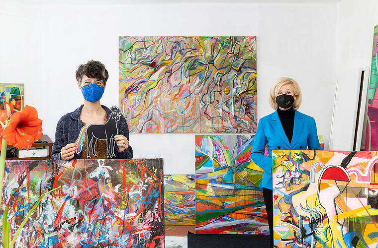 Beim Ortstermin stellte die Fürther Künstlerin Sascha Banck nun erste Skizzen und Motive für ihren „Streifzug durchs Paralleluniversum“ vor. Für die Erarbeitung ihrer Bilderschau tauscht sie sich derzeit mit verschiedenen Experten zu den Themen Klarträume, Imaginationstechniken und Künstliche Intelligenz aus, um Erkenntnisse darüber zu gewinnen, wie man seine Phantasie erweitern und nutzen kann.