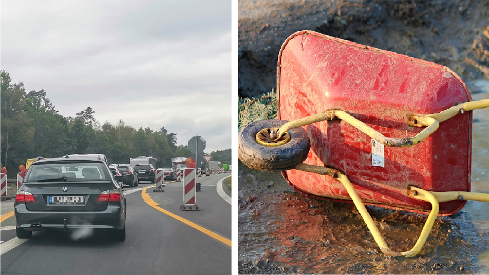 Auf der A3 ist es am Samstag nahe der Ausfahrt Altdorf/Burgthann zu einem größeren Verkehrsunfall gekommen. Der Auslöser: eine auf der Autobahn verlorene Schubkarre.