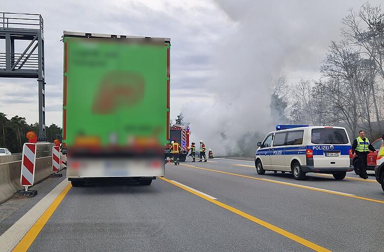 Bis zum Abschluss der Lösch- und Reinigungsarbeiten kam es zu Verkehrsbehinderungen durch eine Sperrung in Fahrtrichtung Würzburg. Der entstandene Sachschaden wird auf rund 35.000 Euro geschätzt.