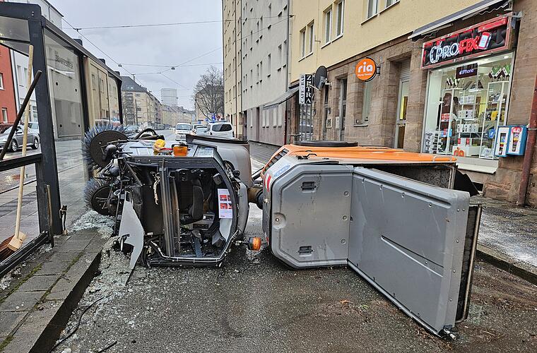 In der Landgrabenstraße in Nürnberg kollidierte eine Kehrmaschine mit einem Haltestellenhäuschen. Der Vorfall führt zu Verkehrsbehinderungen rund um die Straßenbahnhaltestelle "Heynestraße".