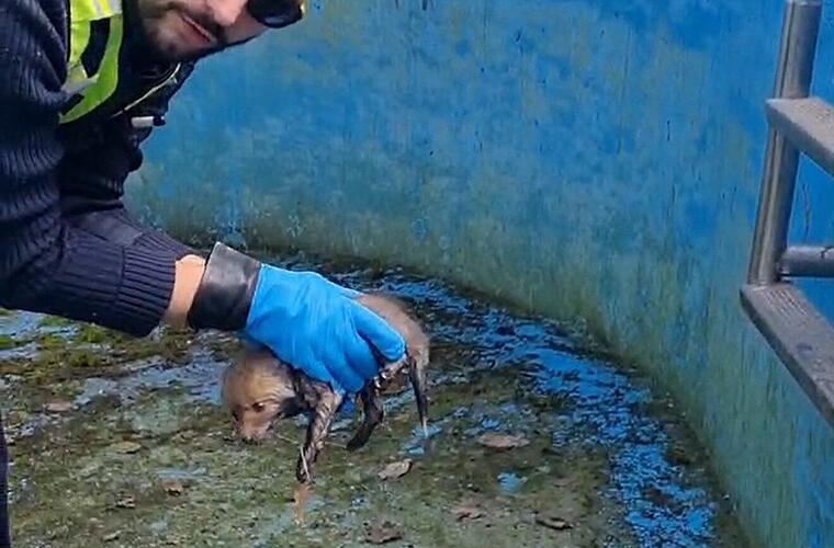 Schreie aus verlassenem Pool - Polizei rettet Fuchswelpen aus misslicher Lage