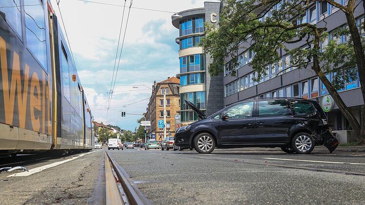 Nürnberg musste wegen eines Unfalls am Freitagnachmittag (27. Juli) stadteinwärts gesperrt werden. Eine Autofahrerin wollte nach dem Tanken zurück auf die B14 fahren, als sie eine von stadteinwärts fahrende Straßenbahn übersah.