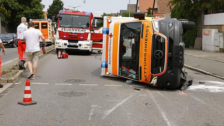 Demnach ereignete sich der Unfall kurz nach 11.30 Uhr zwischen einem Auto und einem Rettungswagen, der ersten Ermittlungen zufolge mit Blaulicht und eingeschaltetem Martinshorn unterwegs war. Durch den Zusammenstoß kippte der Rettungswagen auf die Seite. Sowohl der Patient als auch die Besatzung waren aber angegurtet, gibt die Berufsfeuerwehr der Stadt Nürnberg Entwarnung. Laut dem Polizeipräsidium Mittelfranken wurden ein 58-jähriger Sanitäter und der Patient daher nur leicht verletzt.