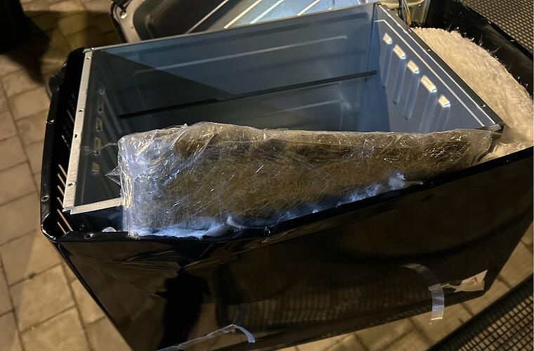 Ein erster Drogenwischtest an den Händen der Reisenden weckte jedoch Zweifel bei den Zöllnerinnen und Zöllnern. Zweifel, die Zollhund Brix mit einem kurzen Schnüffeln bestätigte. Er zeigte auf einen Karton, aus dem ein Minibackofen zum Vorschein kam, hinter dessen Rückwand sich ein Fremdkörper befand. Dieser entpuppte sich nach Öffnung der Rückwand als Paket mit fast 500 Gramm Marihuana.
