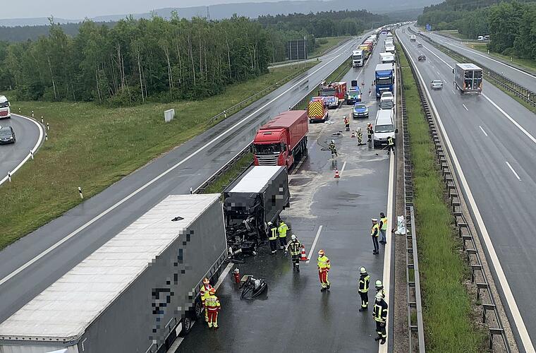 Auf der A6 verunglückte ein 43-jähriger Sprinter-Fahrer am Dienstagvormittag tödlich. Am Autobahnkreuz Altdorf bremste ein Lkw ab und der Transporter fuhr in das Heck des Sattelzugs. Der Sprinter-Fahrer wurde eingeklemmt und starb noch am Unfallort.