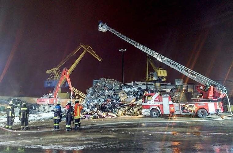 Großeinsatz für die Feuerwehr in Nürnberg: Am Freitagabend hat es am Hafen gebrannt. Durch Funkenflug hatte eine Halde mit Fahrzeugteilen Feuer gefangen.