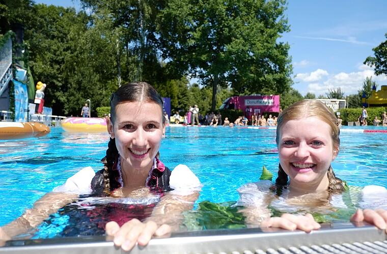 Nass werden beide Trachtenröcke nach dem Sprung vom Drei-Meter-Turm sein. "Ich finde die Idee witzig. Außerdem durften wir im Dirndl umsonst ins Freibad. Und wer weiß, vielleicht gewinnen wir ja den ersten Preis", fasst Isabelle die Motivation zur Teilnahme an der Dirndl-Flug-WM kurz vor dem ersten "Trachten-Jump" zusammen. Als Trophäe hat die veranstaltende Werbeagentur kein Dirndl sondern eine Flugreise ausgelobt.