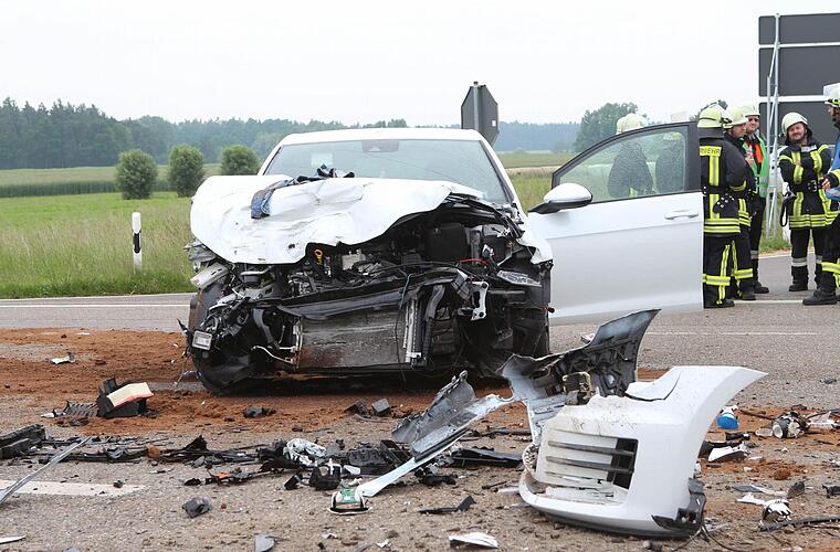 Zwei Insassen des Golfs wurden schwer verletzt, eine Person erlitt mittelschwere Verletzungen. Der Lkw-Fahrer kam mit dem Schrecken davon. Nach ersten Informationen der Polizei vor Ort stoppte der Unfallverursacher nicht an dem Stoppschild, bevor er die Straße überquerte.
