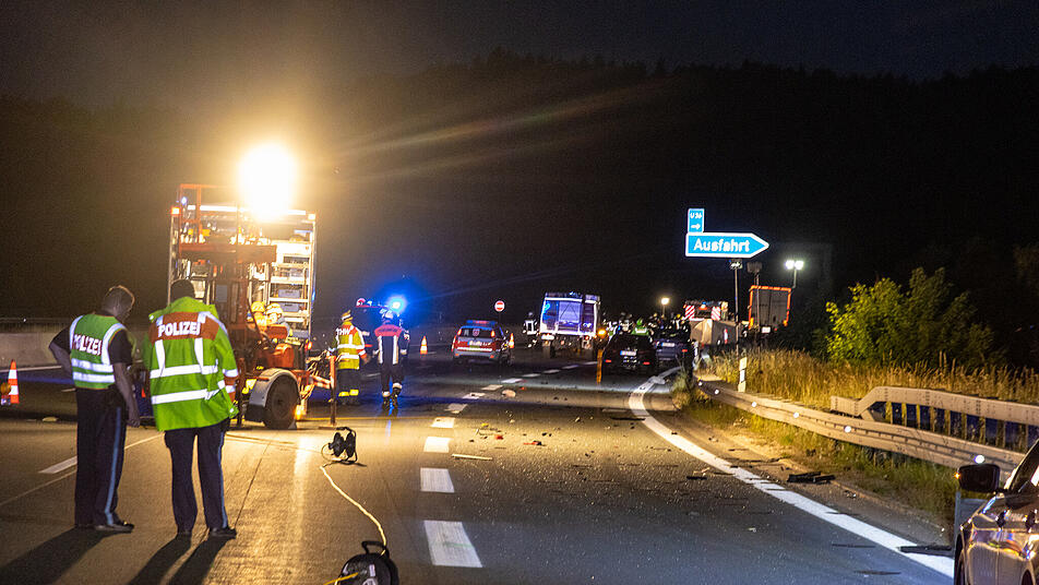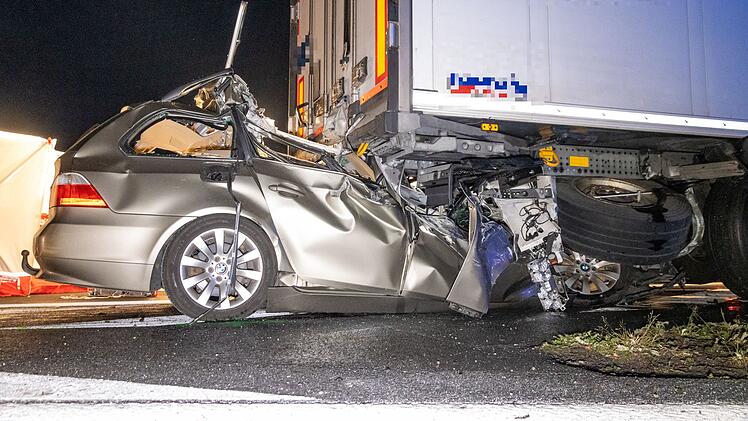 Auf der A9 bei Schnaittach im Kreis Nürnberger Land ereignete sich ein tödlicher Autounfall. Ein Autofahrer war dabei ungebremst in das Heck eines vorausfahrenden Lkws gekracht. Mehr als die Hälfte des Autos wurde unter den Sattelzug geschoben. Der Fahrer war sofort tot.