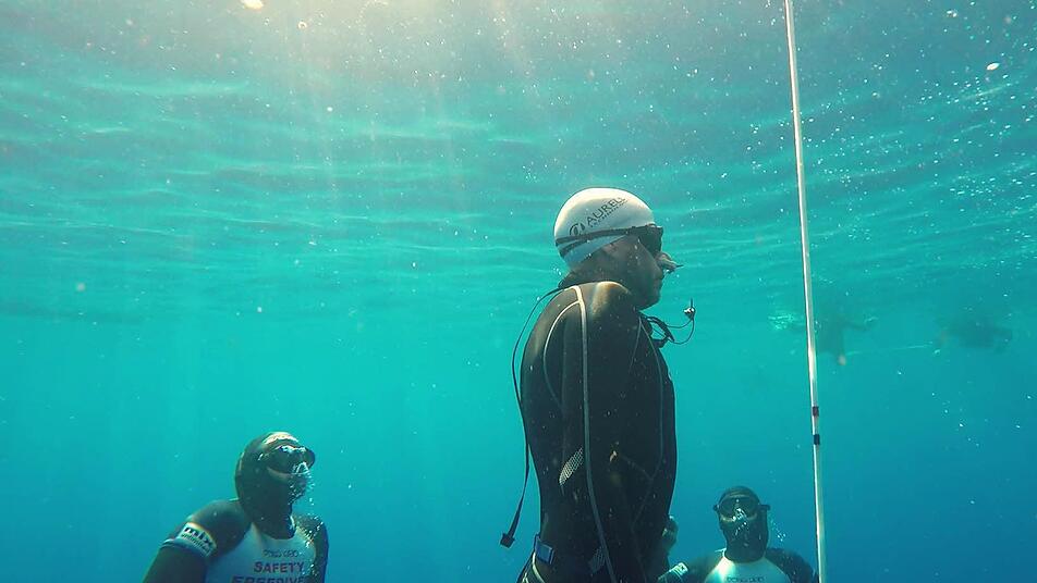 Freitaucher Jens Stoetzner (taucht mit einem Atemzug über 50 Meter tief),...