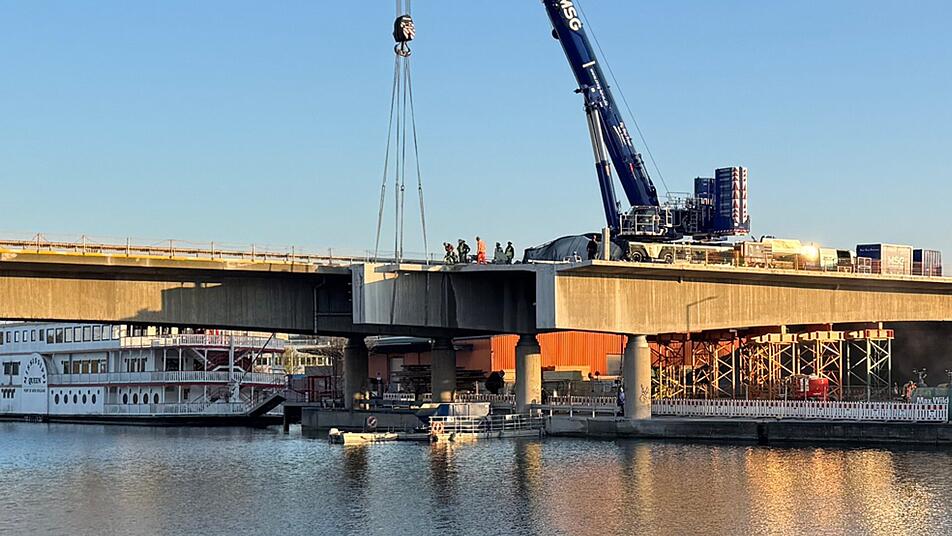 Die Sperrung der Donaustraße müsse deshalb bis Donnerstag (17. April 2025) bis 20 Uhr verlängert werden. Eine Umleitung im Hafengebiet ist demnach ausgeschildert. Autofahrer können das Gewerbegebiet nördlich der Brücke und den Hafen über die Hafenstraße erreichen. "Eine Durchfahrt von und zum Nürnberger Hafen über die Donaustraße ist während der Abbrucharbeiten jedoch nicht möglich", betont die Stadt. Die Arbeiten sind Teil der Erneuerung der maroden Hafenbrücken.