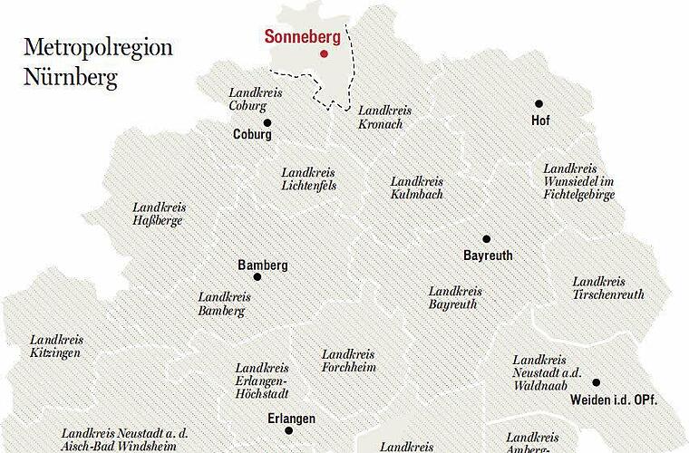 Das sei keine Mitgliedschaft zweiter Klasse, sagt ein Sprecher der Metropolregion, aber doch ein Sonderstatus, denn an sich können nur Landkreise oder kreisfreie Städte in die Metropolregion. Die Sonderrolle würdigt die besondere Lage Sonnebergs, auf die Sibylle Abel wieder und wieder hingewiesen hat: Nicht nur historisch ist der Raum Südthüringen eng an Franken gebunden, auch die wirtschaftlichen Beziehungen gehen eher nach Westen als nach Osten. "Selbst die Verkehrsverbindungen nach Nürnberg sind besser als die nach Erfurt", sagt die Bürgermeisterin.