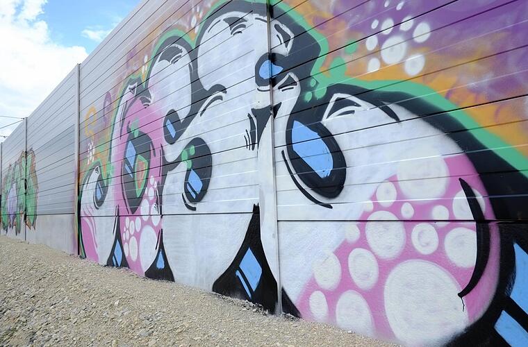 2014 hat die Bahn 19.350 "Graffiti-Straftaten" im ganzen Land registriert. Betroffen seien neben Bahnsteigen, Brückenpfeilern, Güterzügen und S-Bahnen vor allem Lärmschutzwände. Das ärgert die Bahn besonders. Schließlich sollen die Wände nicht nur die Ohren schützen sondern auch die Augen schonen. Dafür geht der Staatsbetrieb bei der Farbwahl sogar auf die Wünsche der Kommunen ein. Nürnberg hat einen roten Rallystreifen. Erlangen hat sich für verschiedene Grautöne entschieden.