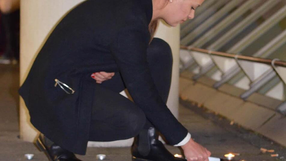 Kerzen zum Gedenken an die Opfer von Paris haben die Nürnberger am Montagabend in der Straße der Menschenrechte angezündet. Beim Schein der brennenden Lichter haben rund 1000 Teilnehmer ihre Trauer und ihr Mitgefühl gezeigt.