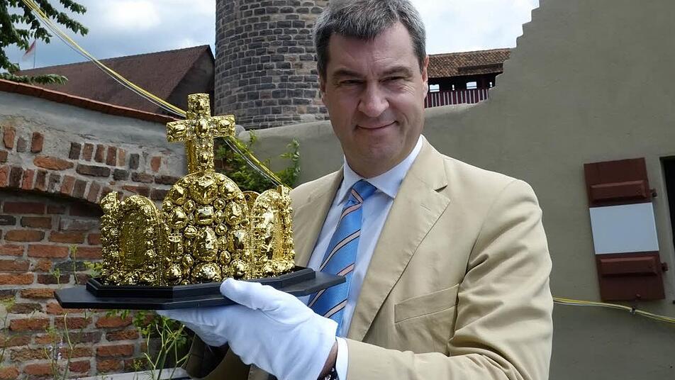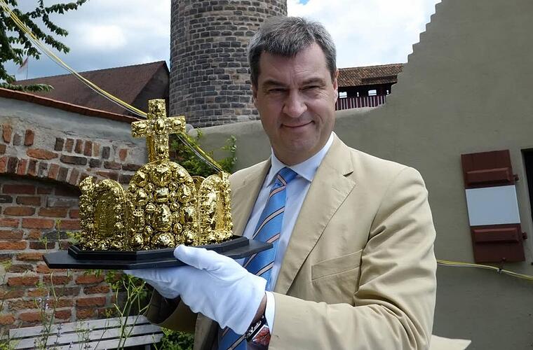 Heimatminister Markus Söder (CSU) präsentierte am Freitag im Garten der Kaiserburg in Nürnberg eine ultramoderne Kaiserkrone - für 20 000 Euro.