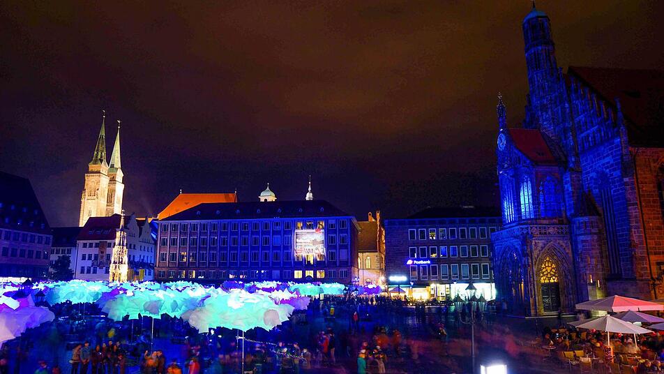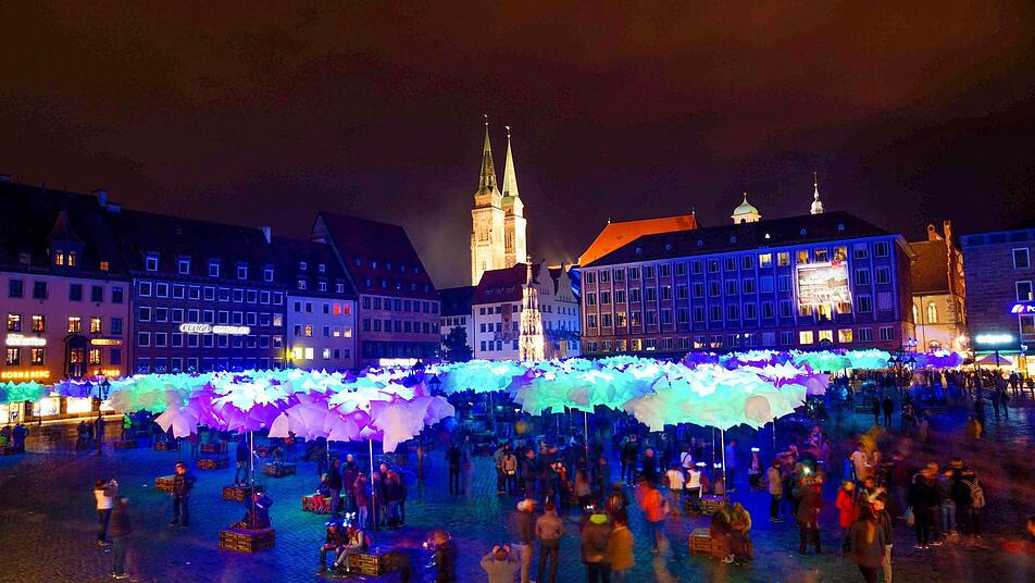 Burg als Projektionsfläche Derweil strömen die Besucher langsam in die Altstadt. Viele haben die Winterklamotten wieder aus dem Schrank geholt. Die Laternen gehen an und funkeln blau in der Nacht. Die Burg wird zur riesigen Projektionsfläche für die Farb- und Bilderphantasien der Künstlerin Anna Bittersohl. Auch auf dem Hauptmarkt gehen die Lichter an. Hier lockt ein Wald zum Verweilen und Nachdenken ein. Marktständer aus Metall bilden die Wurzeln und Stämme, Plastiktüten die Kronen der bunten Installation "Waldplastik", die den sorglosen Umgang mit Rohstoffen thematisiert. Derweil wird im Alten Rathaus fleißig auf Gummi gekaut. Die Künstlerin Simone Brühl verteilte Kaugummis nicht ohne Hintergedanken an die Besucher. Anschließend bastelte Brühl aus den durchgekauten Kaugummis eine DNA-Skulptur. Zum Formen des klebrig-nassen Kunstwerks trug die Künstlerin glücklicherweise weiße Handschuhe.