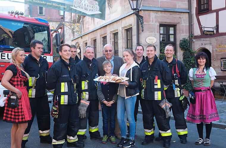 "Schmeckt ausgezeichnet", sagt Michael Sippl und beißt in die erste Wurst. Der 34-jährige Zugführer der Nürnberger Berufsfeuerwehr kann sich noch genau an den Einsatz am 1. Juni erinnern. "Am Sonntagmorgen gegen sechs Uhr haben wir den Rauch über der Zirkelschmiedsgasse bemerkt", erinnert sich Sippl.