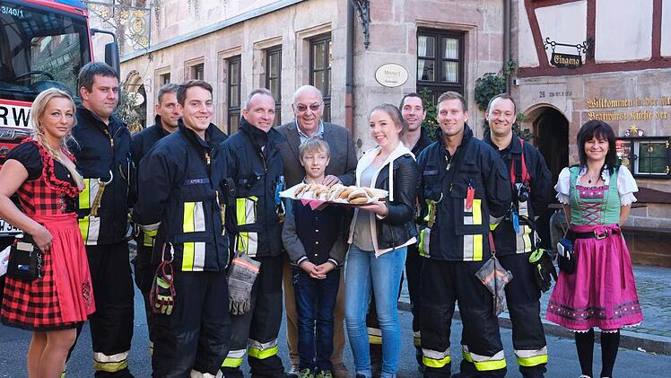 "Mein großer Dank gilt der Nürnberger Berufsfeuerwehr", sagt Stern-Wirt Martin Hilleprandt. Pünktlich zur Wiedereröffnung am Samstag hat Hilleprand die Retter seiner historischen Wurstküche zum Wurst-Essen eingeladen.