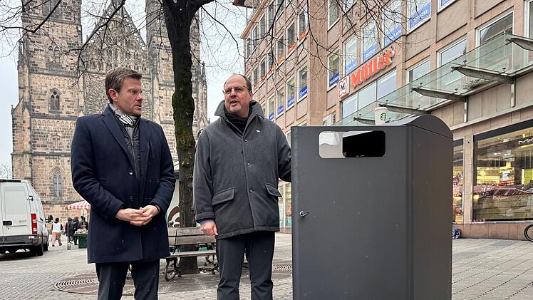 Die Nürnberger Altstadt bekommt neue, größere Mülleimer, sogenannte Mülltonnengaragen. Diese lösen die alten, gusseisernen Papierkörbe ab, so die Stadt in einer Mitteilung. Der Servicebetrieb Öffentlicher Raum Nürnberg (Sör) hat das erste Exemplar des neuen Modells in der Karolinenstraße / Ecke Königstraße aufgestellt, weitere 17 Exemplare folgen bis Jahresende. Oberbürgermeister Marcus König und Christian Vogel, Bürgermeister und Erster Sör-Werkleiter, haben das neue Mülltonnengaragen-Modell am Freitag, 14. Februar 2025, vorgestellt.