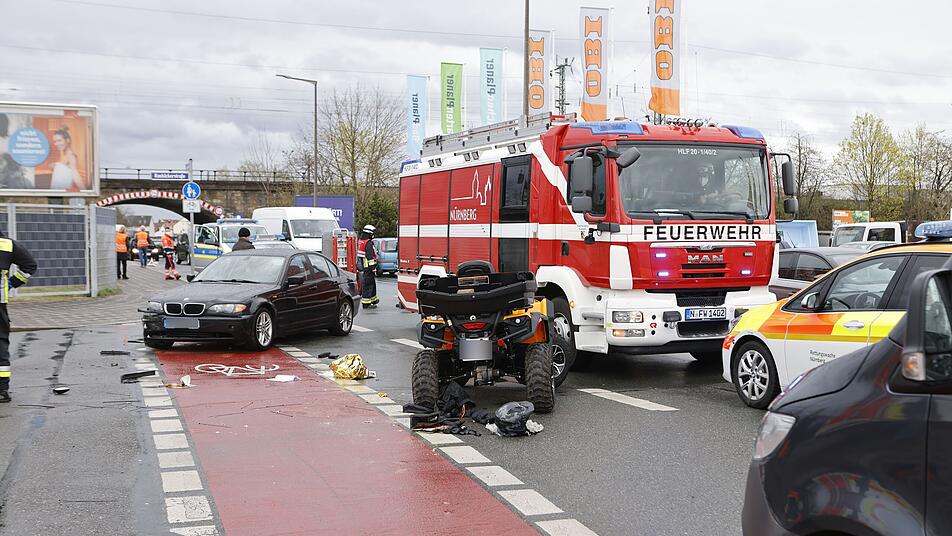 In Nürnberg kam es auf einer Kreuzung zu einer Kollision zwischen einem Auto- und einem Quadfahrer.