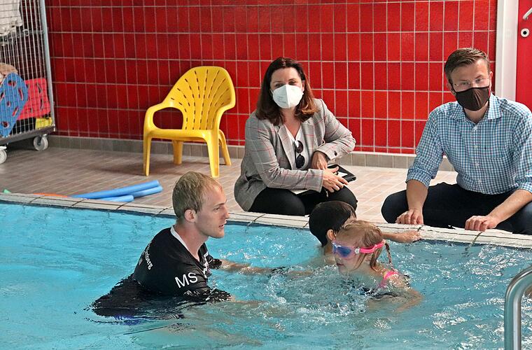 „Daneben bieten die Sportvereine auch eigene Schwimmkurse an, sodass wir gemeinsam die Zahl der Nichtschwimmenden reduzieren können“, betont Oberbürgermeister Marcus König. Dies unterstreicht auch Cornelia Trinkl, Referentin für Schule und Sport.