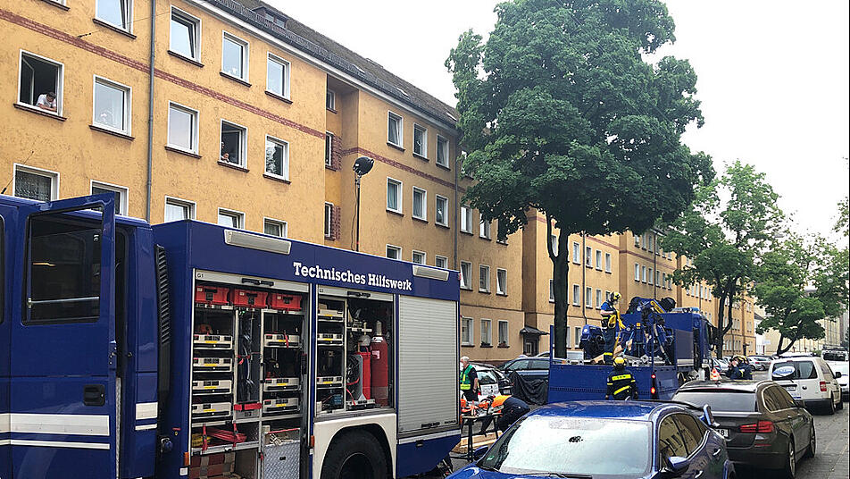 Nach einem schweren Unwetter haben sich im Keller eines Nürnberger Wohnhauses tiefe Risse gebildet, der Boden ist um mehr als einen halben Meter abgesackt. Das Gebäude wurde evakuiert, es droht der Einsturz.