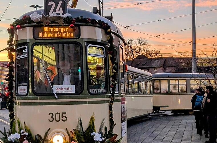 In Nürnberg gibt es in der Adventszeit Fahrten mit geschmückten Straßenbahnen und besonderen Angeboten für Kinder.