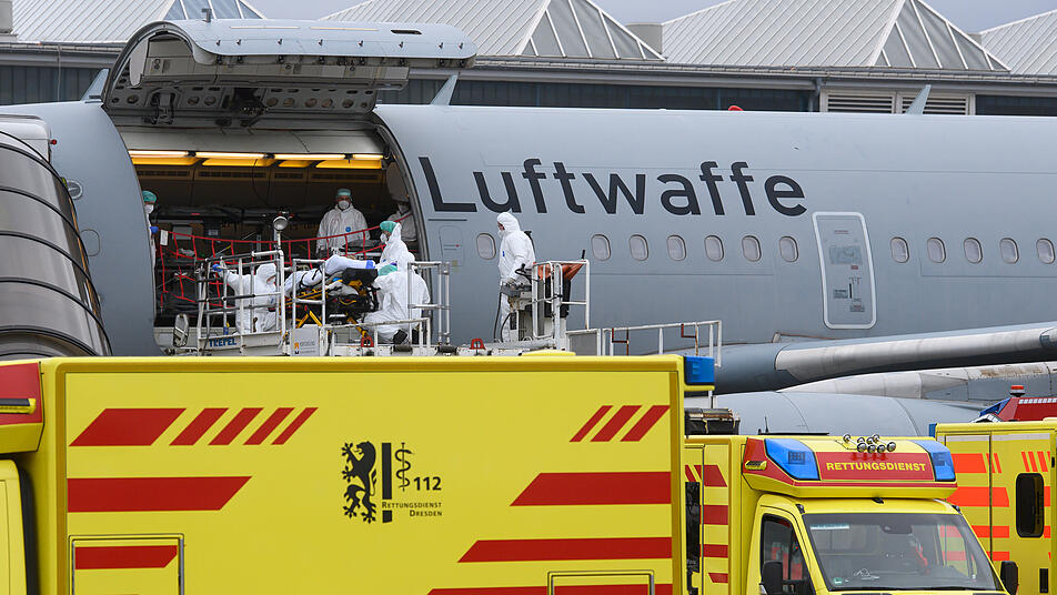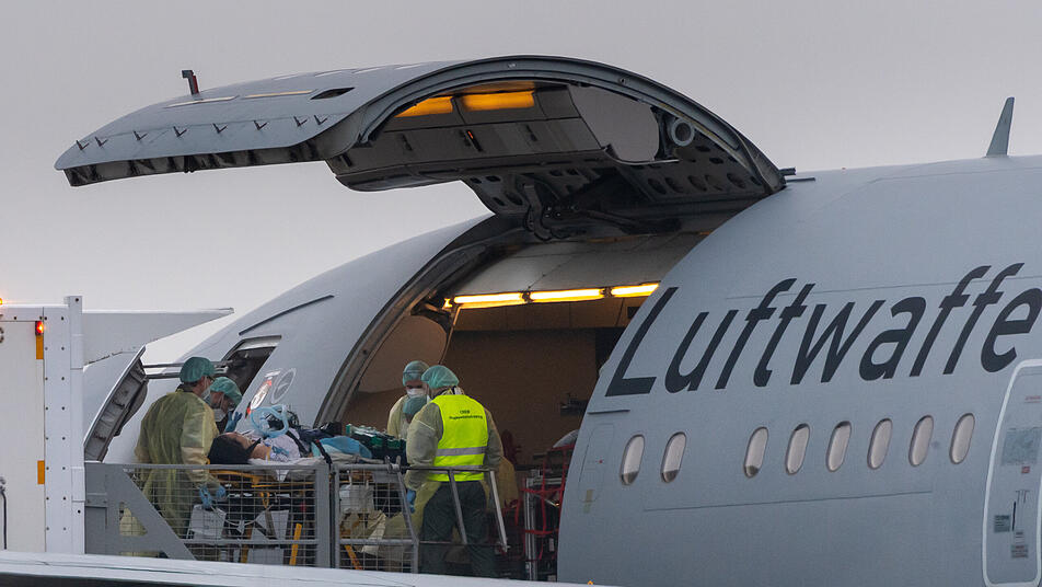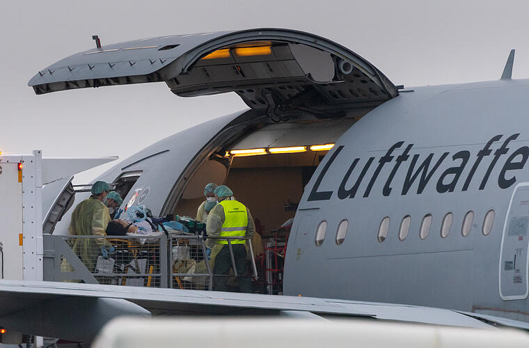 Die Corona-Patienten werden mit Bundeswehr-Maschinen und privaten Ambulanz-Jets ausgeflogen. Bundesweit wurden bislang mehr als 80 Menschen in andere Regionen verlegt ...