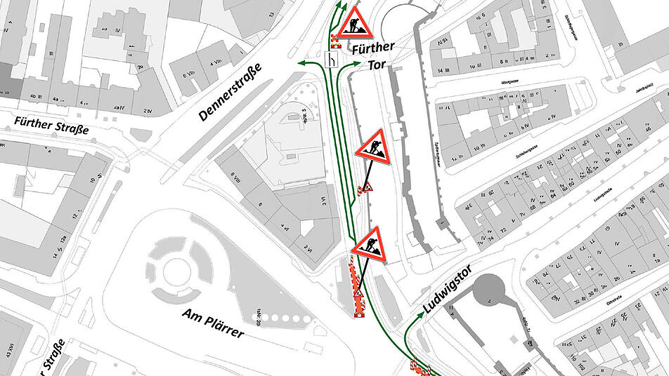 Auf Grund der sehr beengten Platzverhältnisse und der Absicht der Stadt in diesem Bereich möglichst viele neue Bäume zu pflanzen, ist eine exakte Ermittlung der bestehenden Leitungstrassen erforderlich. Die Arbeiten werden an elf verschiedenen Standorten durchgeführt. Größe und Dauer der Suchschlitze variieren und beanspruchen jeweils eine Fahrbahn. Die ersten drei Aufgrabungen finden in der Straße am Spittlertorgraben zwischen Fürther Tor und Ludwigstor statt.