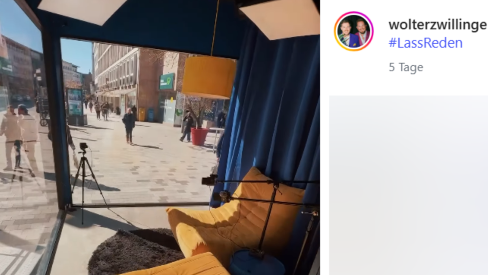 Das Studio ist von 10 bis 18 Uhr geöffnet. "Manchmal wirkt es so, als wäre die Europäische Union ganz weit weg und hätte eigentlich gar nichts mit dem eigenen Leben zu tun. Wenn immer mehr Menschen das Gefühl haben, dass die Politik sich nicht für sie interessiert, dann läuft etwas schief", so die Stadt zum Hintergrund. "#LassReden" will die gefühlte Distanz zwischen Brüssel und dem Alltag junger Europäer überbrücken.