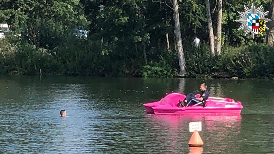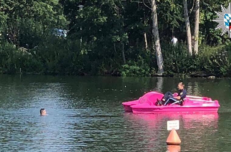 In Nürnberg hat die Polizei am Sonntagnachmittag ein ungewöhnliches Einsatzfahrzeug genutzt. Mit einem Tretboot retteten die Beamten einen Badegast vor einem Wasserkraftwerk.