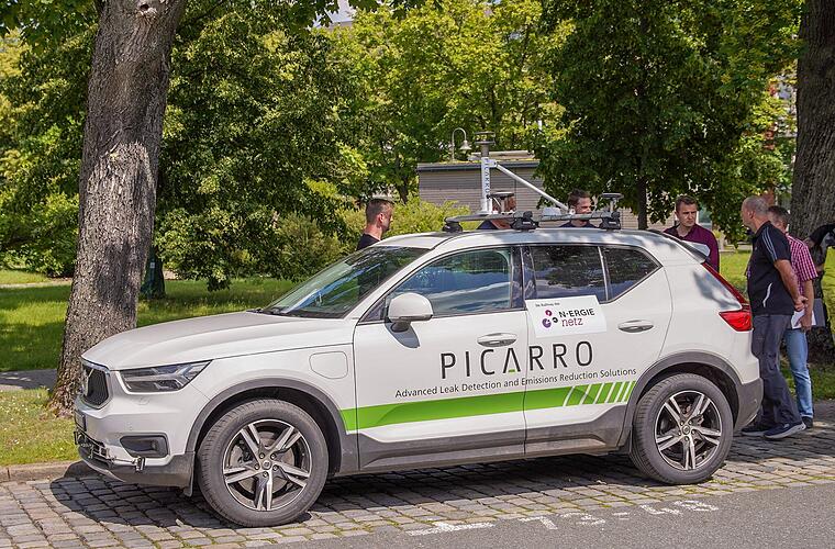 Das Fahrzeug bewegt sich entlang der im Untergrund verlaufenden Erdgasleitungen. Mithilfe moderner Technik wird die Luft angesaugt und auf Methan untersucht, dem Hauptbestandteil von Erdgas. Dieses Prüfverfahren lokalisiert mögliche Leckstellen präziser und schneller als die übliche Kontrolle. Bisher gehen Fachleute der N-ERGIE Netz GmbH die Leitungen regelmäßig mit einem Gasspürgerät zu Fuß ab.
