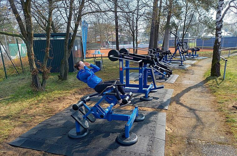 Nun hat der Verein den Outdoor-Fitnesspark erweitert. Neu sind sechs Trainingsgeräte, die "ein Ganzkörpertraining zulassen", so Sommer. Es handle sich bei den Geräten um klassische Fitnessgeräte, die für Fitnessstudio-Besucher keine Neuheiten sind. "Man kann hier ganz effektiv trainieren", erklärt Sommer. Es sei sowohl für die Beine als auch für Bauch und Rumpf und Arme etwas dabei.