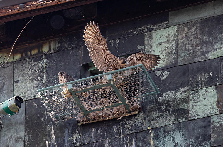 Vier Küken der Nürnberger Wanderfalken sind flügge geworden. Experten werden das als großen Erfolg.
