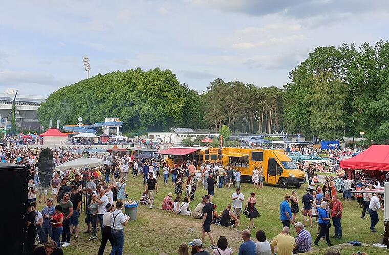 Verschiedene Foodtrucks sorgen für die kulinarische Begleitung von 16 bis 23 Uhr – etwa „Guerilla Gröstl“, „Don Burrito“, „Curry Flitzer“, „Sandybel“ oder „Tom & Berry“. „Lacocktail“ wartet mit Cocktails auf und griechische Spezialitäten bietet die Stadionbad Gastronomie „Quick & Fresh“.