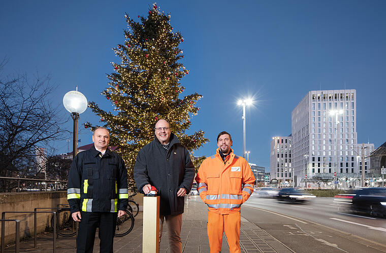 In Nürnberg erstrahlt wieder der Weihnachtsbaum am Bahnhofsplatz mit all seinen Lichtern, erstmals nun mit Zeitschaltuhr. Bürgermeister Christian Vogel richtet sich mit einem Appell an die Bevölkerung.