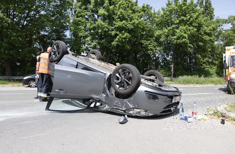 Eines der Autos blieb aufgrund der Wucht des Aufpralls auf dem Dach liegen. Die zwei Fahrerinnen wurden leicht verletzt. Ein Rettungswagen brachte sie in ein Krankenhaus.