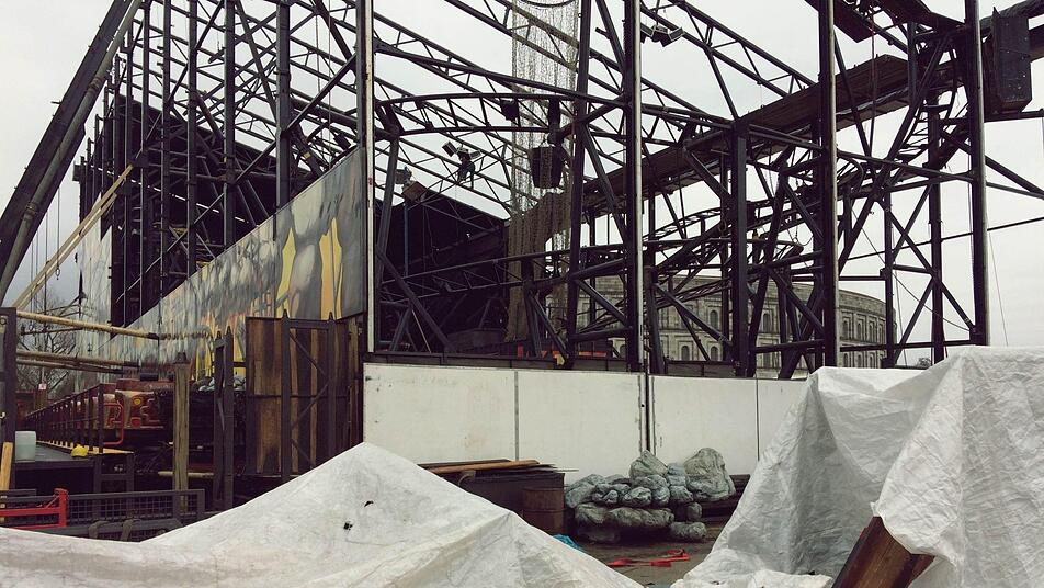 Derweil sind seine Männer immer noch dabei, im Nieselregen die schweren Stahlträger in schwindelerregender Höhe zu verschrauben. Unten auf dem Boden stehen riesige Platten für die bunte Verkleidung des Stahlgerüstes bereit. Das Auge fährt schließlich mit. Über der Bahn wird der Name in bunten Lettern leuchten. "In der Mitte gibt es einen künstlichen Wasserfall." Auf dem rausche "natürlich" richtiges Wasser in die Tiefe. Echte Schausteller klotzen eben wohl lieber anstatt zu kleckern. Unten auf der Erde hüpft derweil Lilly mit erhobenem Haupt zwischen Pfützen auf dem nassen Platz umher. Von Frühling ist in Nürnberg an diesem Freitag noch nichts zu sehen. Reinoldi ist trotzdem froh, dass der Aufbau an diesem Freitag schon drei Wochen vor dem Start des Frühlingsfestes beginnen kann.