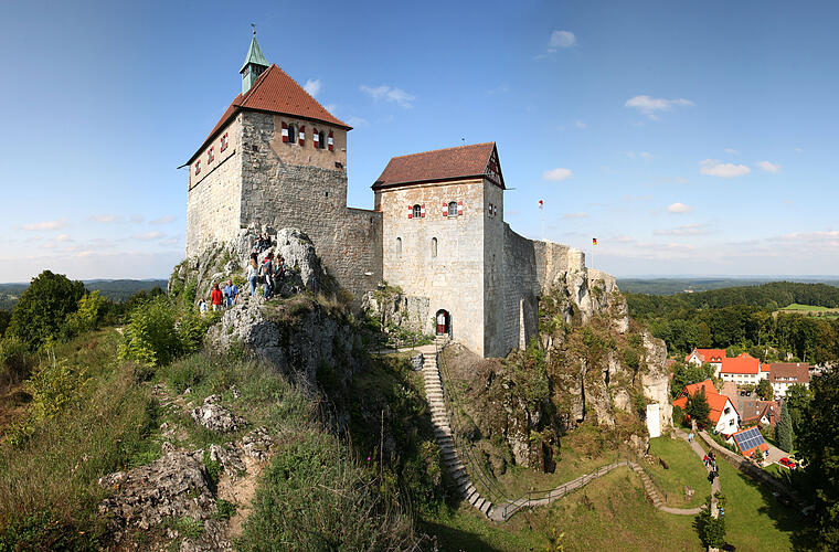 Diese Wanderung führt zu einem echten Highlight im Nürnberger Land: der prachtvollen Burg Hohenstein. Start ist im Bahnhof Rupprechtstegen, von dort geht es Richtung Hohenstein. Auf dem Weg dorthin kann bereits ein kleines Naturspektakel betrachtet werden: Am Uferrand wird Wasser direkt aus Quelltöpfen in den Fluss gespeist. Bei der weiteren Wanderung durchqueren Sie unter anderem das Ankatal und können der Andreaskirche einen Besuch abstatten. Hierbei handelt es sich um eine Karsthöhle, die begangen werden kann.