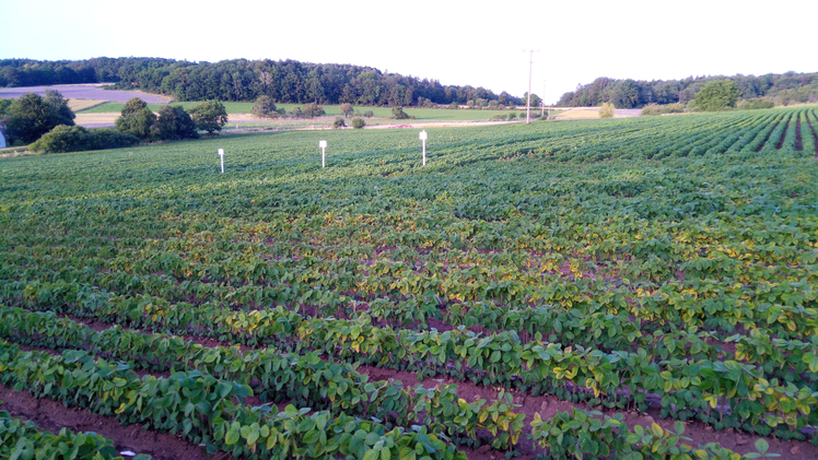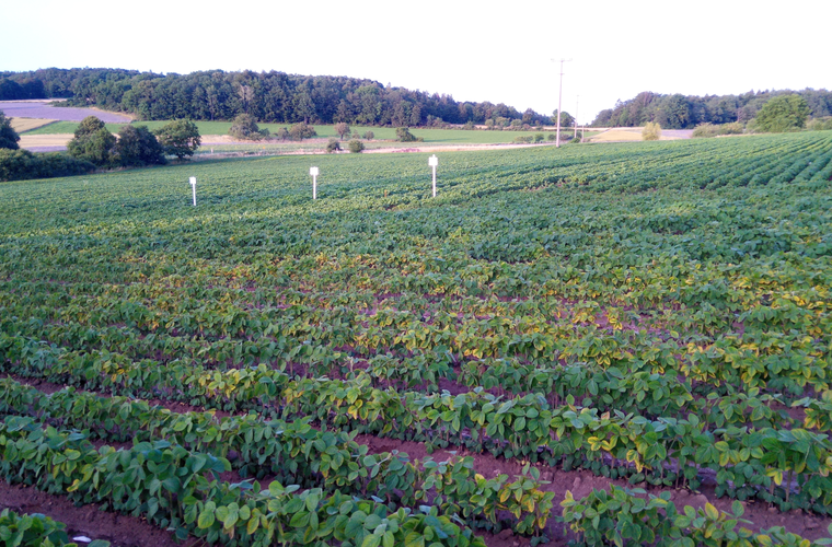 Die vielfältigen Vorzüge habe Landwirt Axel Lämmermann aus Happurg-Deckersberg bereits entdeckt und ist in den Soja-Anbau eingestiegen. Direkt am Feld mit Versuchsanbau von fünf verschiedenen Sorten berichtete er beim Feldabend über erste Erfahrungen mit Speise-Soja und Ölsoja und konnte wertvolle Tipps geben. Der vor den Augen der Teilnehmer liegende Acker zeigte offensichtlich den Erfolg durch bestens gediehene Pflanzen in vergleichsweise kurzer Zeit.